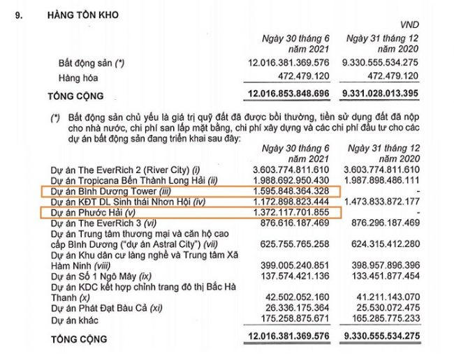 Có thể nhận thấy, trong 6 tháng đầu năm nay, Phát Đạt ghi nhận thêm hàng tồn kho tại hai dự án là Bình Dương Tower và dự án Phước Hải. Tổng tồn kho của hai dự án này là gần 3.000 tỷ đồng. Được biết, tại các dự án là The EverRich 2 và The EverRich 3, Phát Đạt đang trong quá trình hoàn thành các yêu cầu theo quy định của Nhà nước để đủ điều kiện chuyển nhượng phần còn lại của dự án theo HĐHTĐT với hai công ty là Công ty TNHH Đầu tư Big Gain (dự án The EverRich 2) và Công ty TNHH Dynamic Innovation (dự án The EverRich 3).