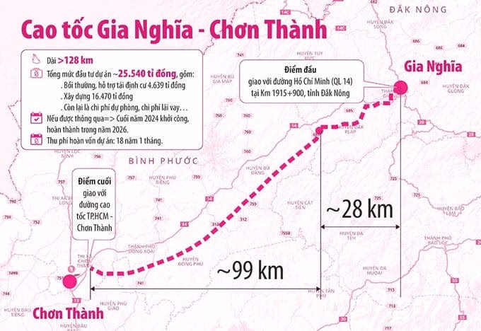 Hiện tại, tỉnh Đắk Nông đang chuẩn bị thực hiện các dự án cơ sở hạ tầng được phê duyệt trong quy hoạch. Tỉnh đang lên báo cáo nghiên cứu tiền khả thi cho cao tốc Gia Nghĩa - Chơn Thành. Sơ bộ tổng mức đầu tư dự án này khoảng 25.540 tỷ đồng, gồm 12.770 tỷ đồng vốn Nhà nước và 12.770 tỷ đồng vốn do nhà đầu tư thu xếp. Liên danh Tập đoàn Vingroup và Ngân hàng TMCP Kỹ thương Việt Nam (Techcombank) đã có văn bản đề xuất thực hiện dự án đầu tư tuyến cao tốc này.