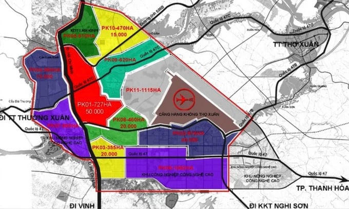 Cụ thể ranh giới khu đất được phê duyệt: Phía Bắc giáp đường số 3 (Quốc lộ 47) và khu vực Cảng hàng không Thọ Xuân, phía Nam giáp đường số 4 (đường Vành đai phía Nam KCN Lam Sơn - Sao Vàng), phía Tây giáp đường Hồ Chí Minh, phía Đông giáp khu đất sử dụng hỗn hợp theo quy hoạch chung.