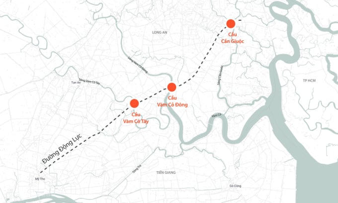Theo đó, 3 cầu trên đường tỉnh 827E sẽ hình thành tuyến đường xuyên suốt từ TP. HCM qua Long An đến Tiền Giang, nhằm tăng cường kết nối giao thông giữa TP. HCM và các tỉnh ĐBSCL; giảm bớt áp lực giao thông trên các tuyến Quốc lộ 1, Quốc lộ N2, Quốc lộ 50... tại khu vực cửa ngõ phía Tây TP. HCM.