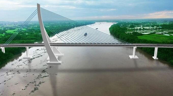 Cầu sông Vàm Cỏ Đông có nhịp chính dạng dây văng với chiều dài khoảng 1.356m.