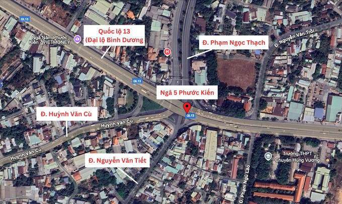 Nút giao ngã năm Phước Kiến (còn gọi là ngã năm Bệnh viện 512 giường) nằm trên trục Quốc lộ 13, đoạn qua phường Hiệp Thành, TP. Thủ Dầu Một, tỉnh Bình Dương dự kiến là nút giao đầu tiên của tỉnh này.