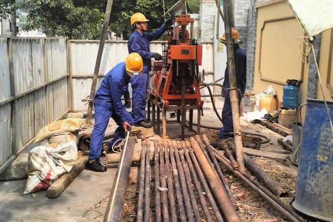 Các đơn vị khoan khảo sát địa chất vào đầu tháng 3. Ảnh: Phạm Diệp