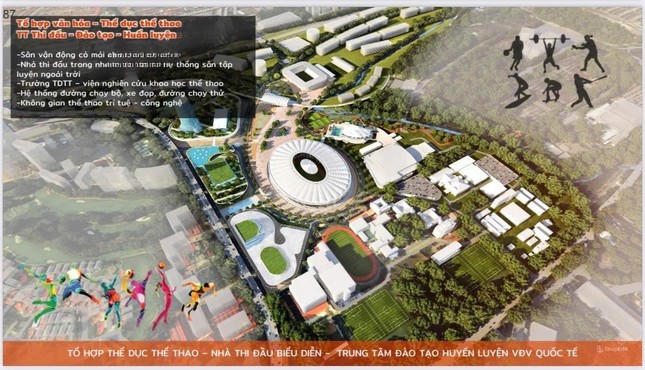 Về Khu liên hợp thể theo, tỉnh dự kiến sẽ xây dựng sân vận động với sức chứa trên 80.000 chỗ ngồi, trở thành công trình trung tâm, kết nối linh hoạt với các khu chức năng khác.
