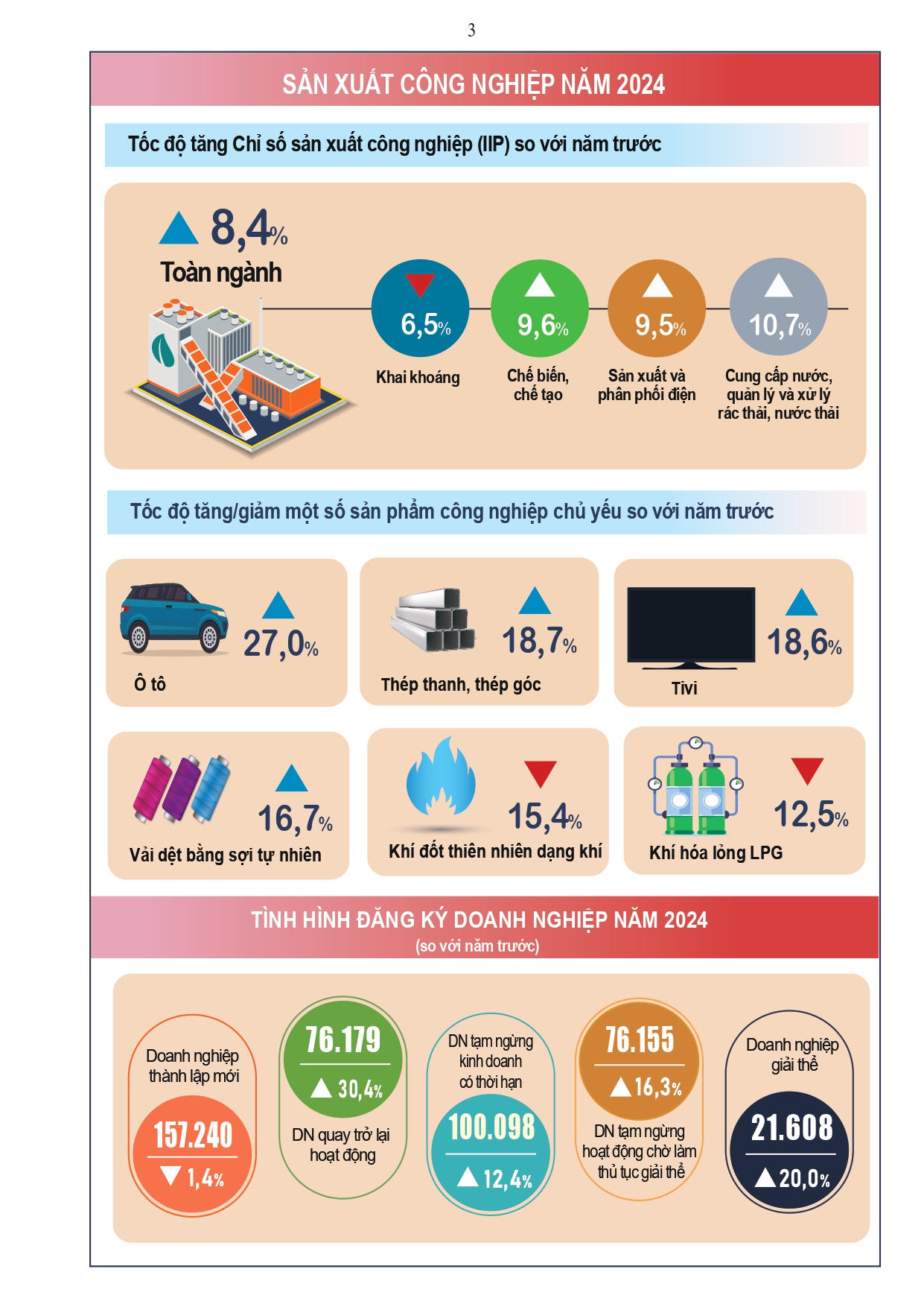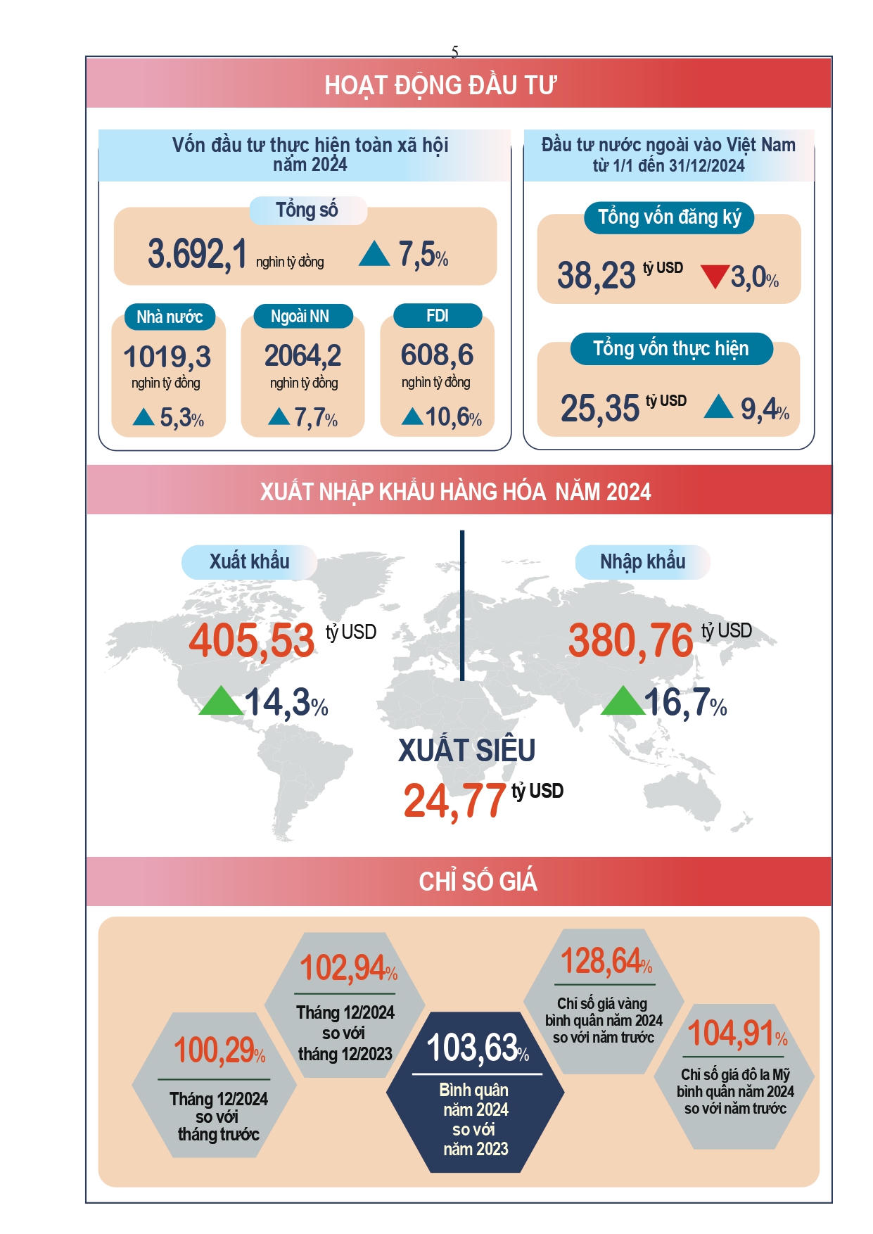 Tình hình kinh tế - xã hội nước ta năm 2024 tiếp tục xu hướng phục hồi rõ nét, tăng trưởng khởi sắc dần qua từng tháng, từng quý, lạm phát thấp hơn mức mục tiêu, các cân đối lớn được đảm bảo, là điểm sáng về tăng trưởng kinh tế trong khu vực và trên thế giới.