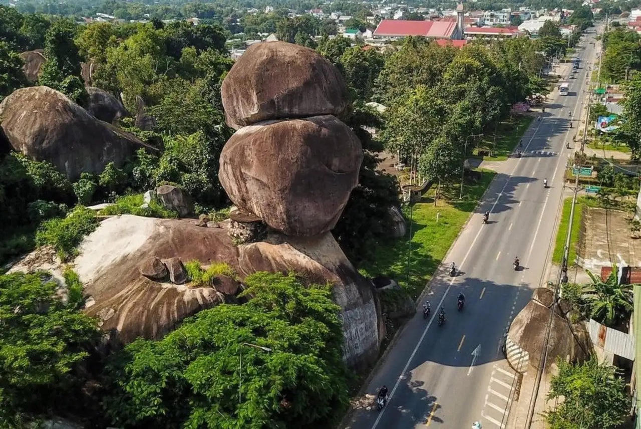Đá Ba Chồng là một địa điểm du lịch đặc biệt tại Đồng Nai, nổi tiếng với tên gọi độc đáo và cảnh quan thiên nhiên hùng vĩ. Cái tên "Đá Ba Chồng" đã gợi lên sự tò mò và hấp dẫn đối với hàng ngàn du khách từ khắp nơi. Tại sao lại có tên gọi này? Bởi lẽ, nơi đây có ba hòn đá lớn xếp chồng lên nhau, tạo thành một cột đá khổng lồ cao hơn 35m, trông vô cùng kỳ bí và ấn tượng.