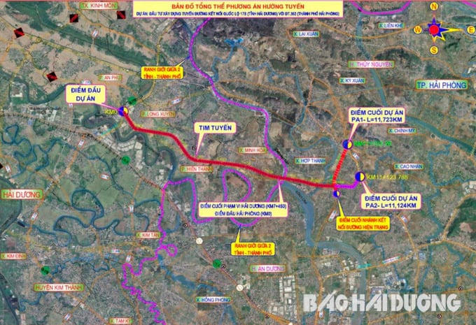 Theo đó, dự án có điểm đầu kết nối Quốc lộ 17B khoảng Km12+500, điểm cuối nối đê hữu sông Kinh Thầy (tại khoảng Km47+050), khớp nối với địa điểm quy hoạch xây dựng cầu vượt sông Kinh Thầy (do tỉnh Hải Dương và TP. Hải Phòng hợp tác đầu tư).