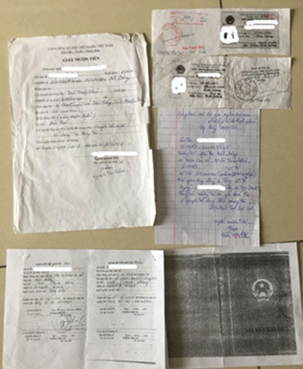 Giấy tờ khác liên quan mà các đối tượng để lại để làm tin (bản chính đã được trao công an). Ảnh: P.V