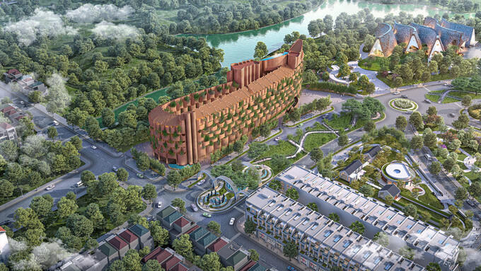 Tổ hợp khách sạn và trung tâm hội nghị được ông chủ Tập đoàn Trung Nguyên Legend khởi công lấy cảm hứng từ yếu tố thiên nhiên bản địa cũng như triết lý về kiến trúc chữa lành.