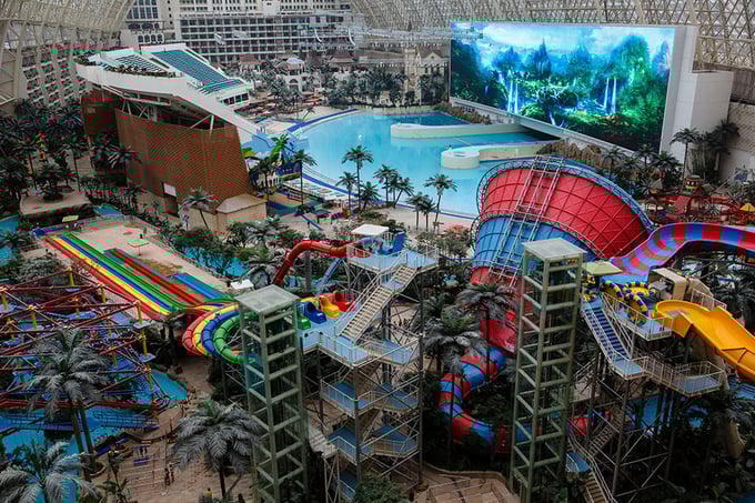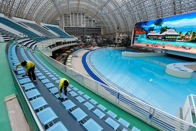 Toà nhà có một công viên nước với bãi biển nhân tạo dài 400m và có thể chứa đến 6.000 người