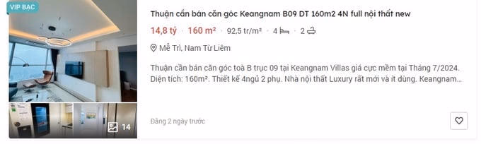 Ở thời điểm mở bán, giá căn hộ tại Landmark 72 được rao ở mức cao kỷ lục lên tới 7-8 tỷ đồng/căn. Hiện tại, theo khảo sát trên trang Batdongsan.com.vn, giá rao bán các căn hộ thứ cấp tại đây dao động trong khoảng 80-100 triệu đồng/m2, các căn hộ đa phần dao động ở mức trên dưới 10 tỷ đồng/căn.