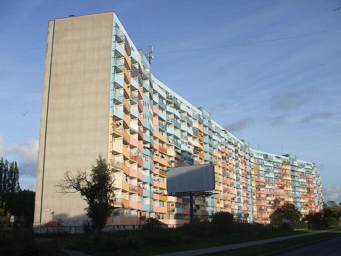 Môi trường xung quanh tòa nhà khổng lồ này trông giống như một công trường xây dựng bị bỏ hoang. Xung quanh là những đống cát, những tấm bê tông nằm ngổn ngang, nó không hề có bãi cỏ hay thậm chí là vỉa hè. Nhưng đối với hầu hết cư dân sống tại đây, có được căn hộ riêng đã là một điều đáng quý, đặc biệt là ở một nơi thiếu nhà ở trầm trọng như thế này. Từ các tầng cao của tòa nhà, có thể nhìn thấy biển thậm chí cả Bán đảo Hel khi thời tiết tốt.