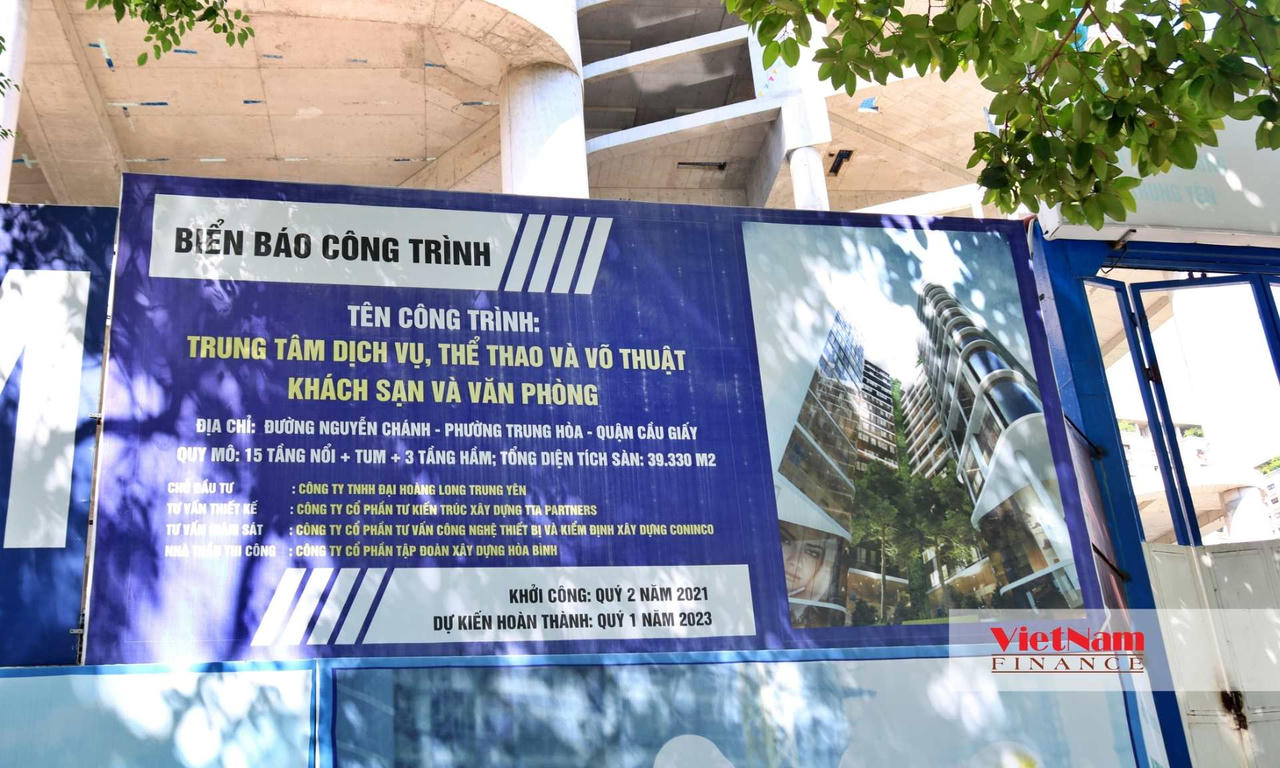 Dự án Trung tâm dịch vụ, thể thao và võ thuật, khách sạn và văn phòng (Ha Noi Hilton West) là dự án được đầu tư và phát triển bởi Công ty TNHH Đại Hoàng Long Trung Yên.Dự án Ha Noi Hilton West toạ lạc tại số 114 Nguyễn Chánh, quận Cầu Giấy, thành phố Hà Nội có quy mô 3 tầng hầm và 15 tầng nổi + 1 tum.Ha Noi Hilton West bao gồm 1 toà khách sạn và 1 toà văn phòng với tổng diện tích sàn là 39.330m2.Theo giới thiệu, dự án sở hữu vị trí đắc địa trung tâm Hà Nội, dự kiến sau khi hoàn thiện, dự án sẽ trở thành một trong những tòa nhà phức hợp có thiết kế hiện đại, sang trọng, trang bị đầy đủ cơ sở vật chất tiên tiến tại thủ đô.Dự án do Công ty Cổ phần Tập đoàn xây dựng Hoà Bình làm nhà thầu thi công. Thông tin công bố cho biết, dự án được khởi công vào quý II/2021, dự kiến hoàn thiện vào quý I/2023.Theo tìm hiểu của VietnamFinance, vào tháng 1/2024, dự án được làm lễ cất nóc và dự kiến nhà thầu bàn giao cho chủ đầu tư vào tháng 3/2024.Tuy nhiên, sau gần 9 tháng cất nóc, hiện dự án vẫn đang rất dở dang, vắng bóng công nhân. Bên trong dự án thiết bị, vật liệu xây dựng nằm ngổn ngang.Nằm bên cạnh dự án là toà nhà của Kiểm toán Nhà nước và hệ thống trường Tiểu học, THCS & THPT Nguyễn Siêu.Về đơn vị chủ đầu tư, theo tìm hiểu của VietnamFinance, Công ty Đại Hoàng Long Trung Yên được thành lập vào 22/4/2019, có địa chỉ tại Số 78 phố Quán Thánh - Phường Quán Thánh - Quận Ba Đình - Hà Nội.