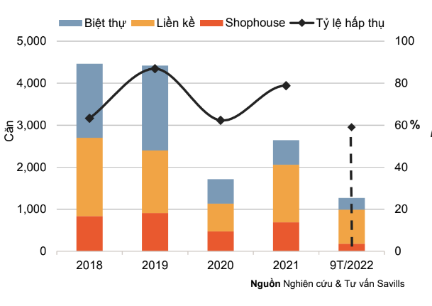 Savills đã chỉ ra, nguồn cung phân khúc biệt thự, liền kề có 489 căn đến từ ba dự án mới gia nhập thị trường và từ giai đoạn sau của ba dự án đang hiện hữu, tăng 235% theo quý và 117% theo năm. Nguồn cung sơ cấp thị trường đạt 1.180 căn từ 15 dự án, tăng 19% theo quý và 8% theo năm.