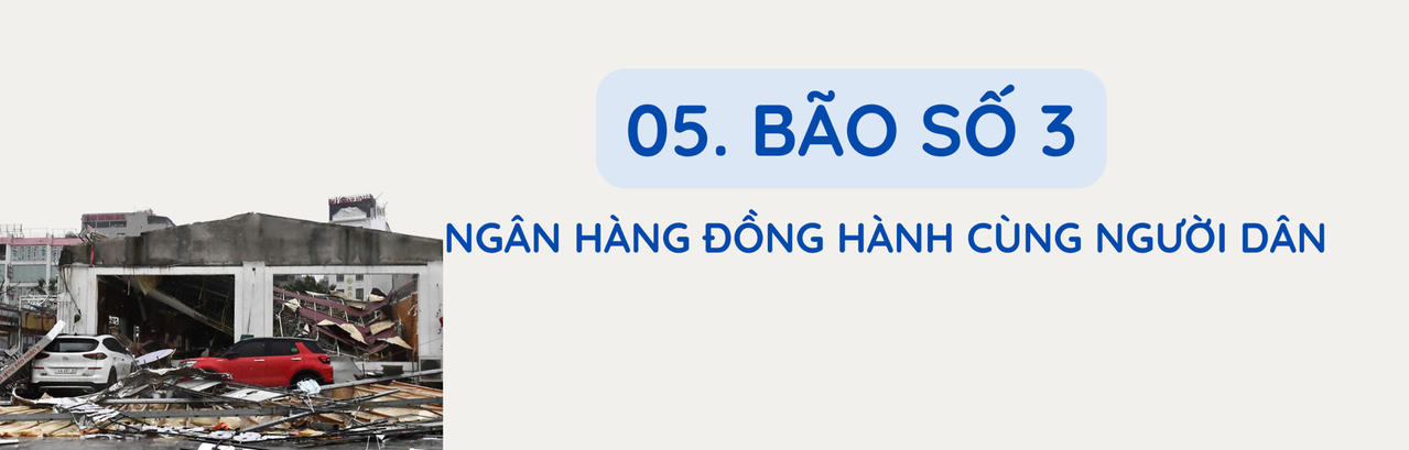 Hàng loạt ngân hàng nhanh chóng vào cuộc. Ở nhóm ngân hàng quốc doanh, Vietcombank, Agribank,… giảm lãi từ 0,5% - 2% cho khách hàng vay vốn sản xuất kinh doanh ở khu vực bị thiệt hại do bão. Các ngân hàng tư nhân cũng đồng loạt miễn giảm lãi, đồng thời thực hiện nhiều chính sách giãn, hoãn nợ cho những khách hàng gặp khó khăn sau bão.