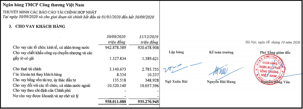 Vietinbank cũng là một trong những ngân hàng có số dư cho vay khách hàng lớn nhất. Tính đến cuối quý III số dư cho vay khách hàng của ngân hàng đạt 958.011 tỷ đồng, tăng 2,4% so với cùng kỳ. Tiền gửi khách hàng cũng tăng 5,2% đạt 939.175 tỷ đồng.
