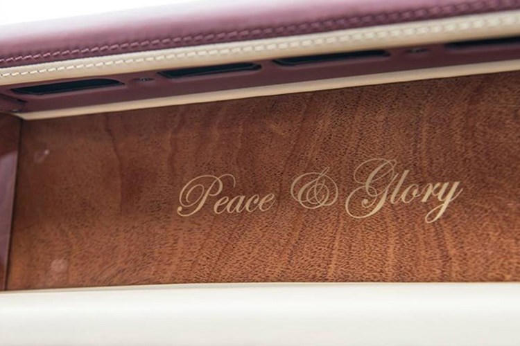 Từng chi tiết trên xe được chế tác thủ công bởi những nghệ nhân tài hoa nhất. Điểm đặc biệt chính là huy hiệu dạng chứ “H” được lồng vào nhau mang ý nghĩa đặc biệt đối với chủ nhân chiếc xe, thể hiện sự gắn kết bền chặt và tình yêu mà ông dành cho người vợ yêu quý của mình.