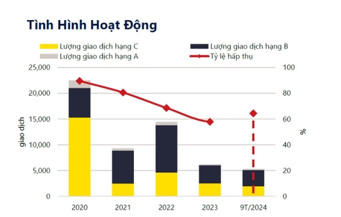 Tỷ lệ hấp thụ trong quý III đạt 39%, giảm nhẹ so với 41% của quý II nhưng cao hơn 26% của cùng kỳ năm trước.