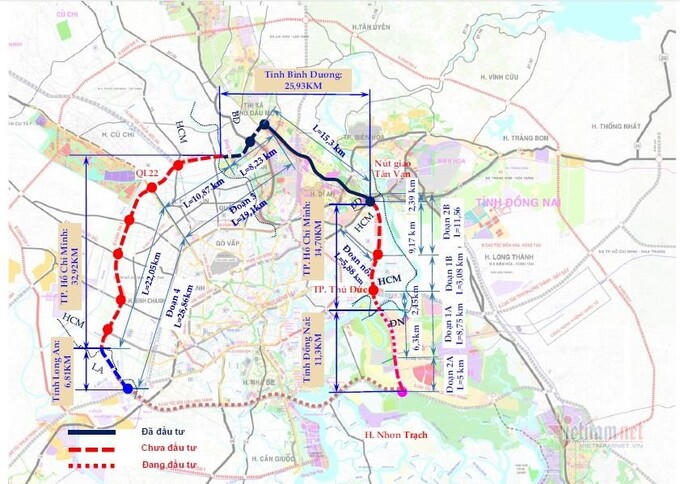 Đường vành đai 3 TP.HCM có tổng chiều dài 76,34 km (đoạn qua TP.HCM 47,51 km; Đồng Nai 11,26 km; Bình Dương 10,76 km; Long An 6,81 km). Tổng mức đầu tư của dự án hơn 75.300 tỷ đồng.