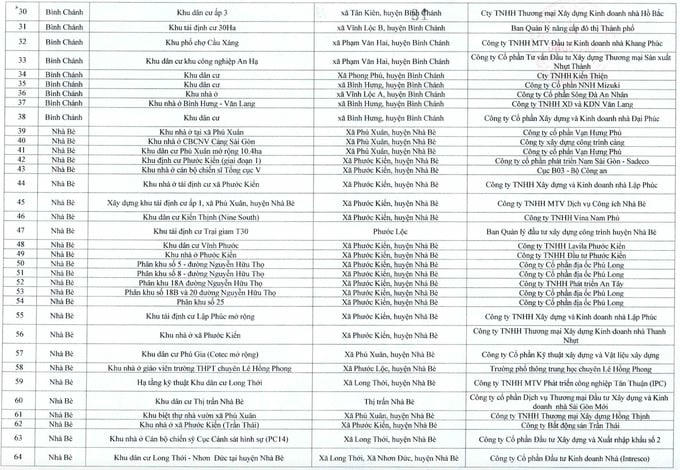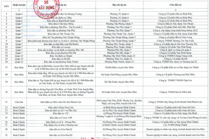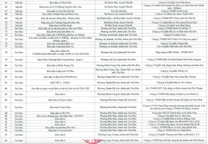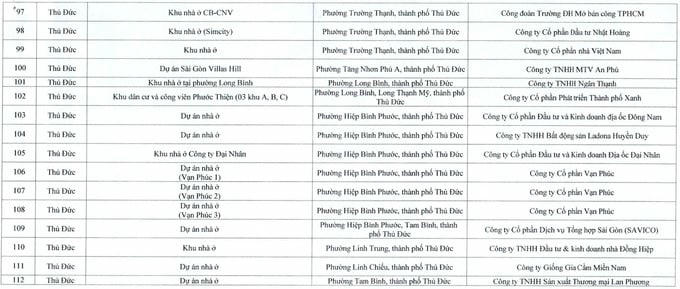 Ngoài 112 dự án hiện tại, Sở Xây dựng TP.HCM cho biết đang rà soát thêm tại các khu vực như Bình Dương cũ, Bà Rịa - Vũng Tàu cũ để đánh giá tính pháp lý và thực hiện theo chỉ đạo của UBND TP.HCM.
