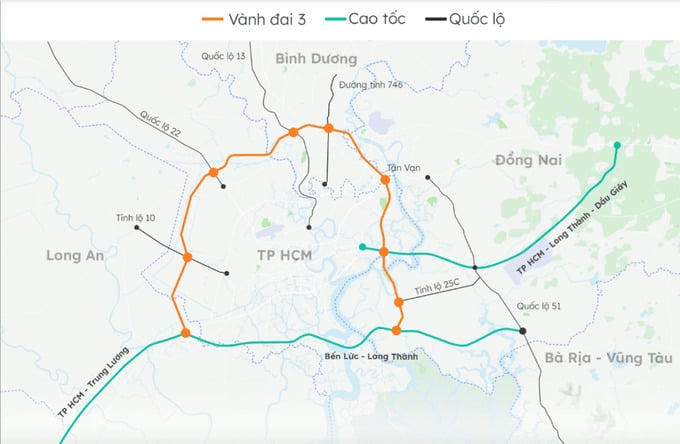 Dự án vành đai 3 TP. HCM có tổng chiều dài 76,3km, đi qua 4 địa phương: TP. HCM, tỉnh Đồng Nai, tỉnh Bình Dương và tỉnh Long An.