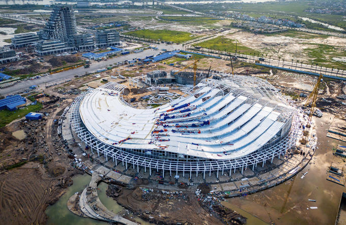 Dự án Trung tâm Chính trị - Hành chính Hải Phòng khởi công từ tháng 1/2023. Sau 21 tháng thi công, công trình đã cơ bản thành hình, với quy mô đáng chú ý tại Khu đô thị Bắc sông Cấm.