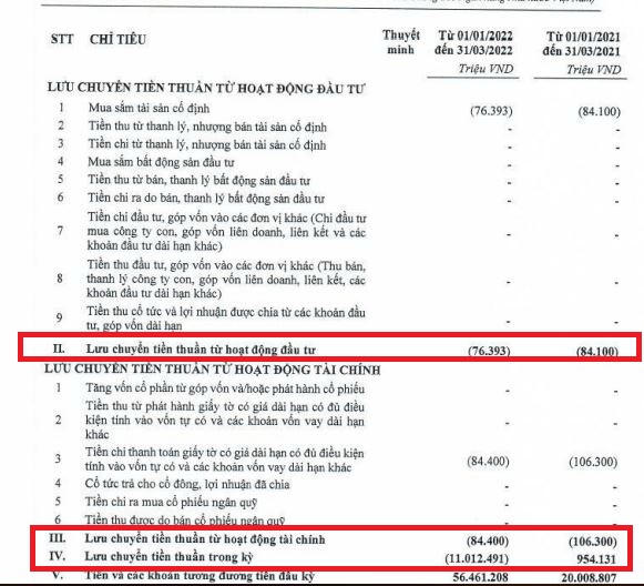 Mặc dù quý 1/2022 TPBank có lợi nhuận tăng trưởng tương đối tốt, song dòng tiền tại TPBank lại đang hao hụt khá lớn.