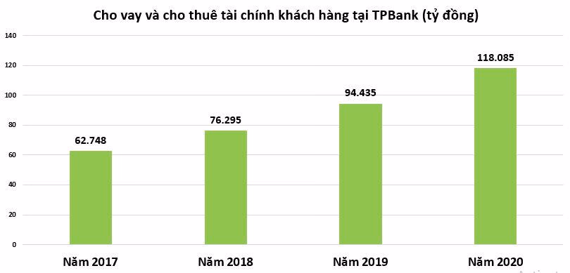 Kết thúc năm 2020, dư nợ tín dụng của TPBank tăng 25,5% còn huy động tăng 25,4%. Đồng thời, tỷ lệ cho vay ngắn hạn, trung và dài hạn cuối năm 2020 lần lượt là 29%:25%:46%, trong khi đầu năm là 25%:27%:47%.