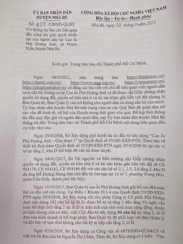 Đó là nội dung văn bản phản hồi của UBND huyện Nhà Bè (TP.HCM) liên quan đến vụ việc “Mua nhà xong phải ôm đơn kêu cứu khắp nơi vì Ban quản trị không cho vào ở” tại Cao ốc Phú Hoàng Anh.
