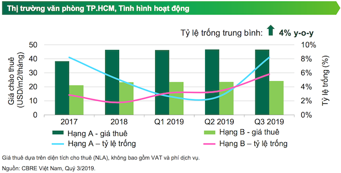 Tính đến quý III/2019, nguồn cung Hạng A đạt 414.113 m2 sàn với 16 tòa nhà và Hạng B là 894.201 m2 sàn với 65 tòa.