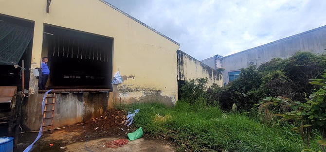 Khu vực nhà máy xây dựng trái phép trên đất của hàng xóm.