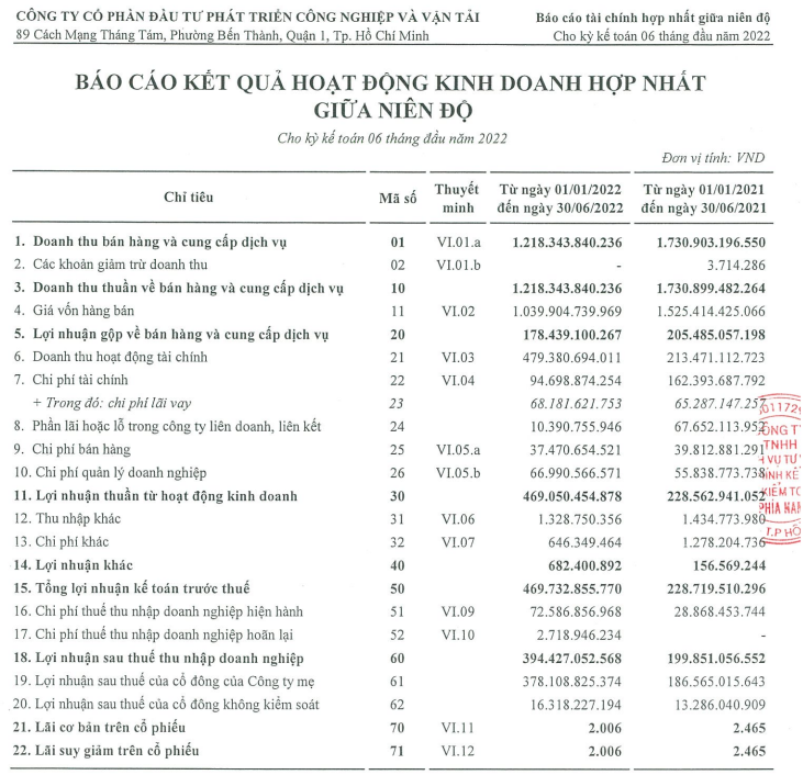 Công ty thuyết minh doanh thu tài chính tăng đột biến chủ yếu do ghi nhận 234,89 tỷ đồng so với cùng kỳ không ghi nhận, đây là lãi đầu tư cổ phiếu, trái phiếu trong 6 tháng đầu năm 2022.