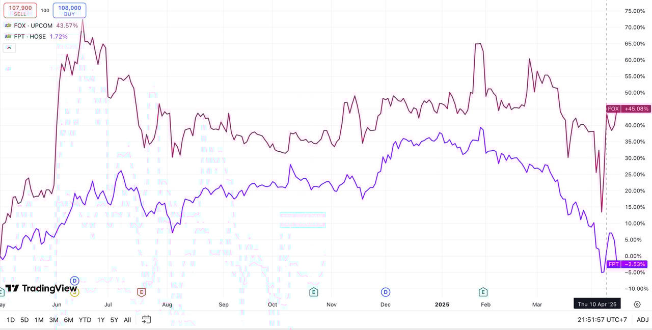 Phiên giao dịch ngày 16/4, khi các nhà đầu tư còn đang ngóng chờ một chỉ báo rõ ràng giữa dòng thông tin vĩ mô đan xen, bộ đôi FPT và FOX bất ngờ hoá “người dưng ngược lối”.