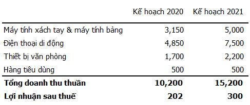 Đáng chú ý, Thế giới Di động (MWG) là một trong những doanh nghiệp đưa ra mục tiêu sớm nhất cho năm 2021. Theo đó, công ty của Chủ tịch Nguyễn Đức Tài kỳ vọng năm tới đạt mức tăng trưởng 14% doanh thu thuần ở mức 125.000 tỷ đồng và lợi nhuận sau thuế ở mức 4.750 tỷ đồng, tăng 38% so với kế hoạch đề ra trong năm 2020.