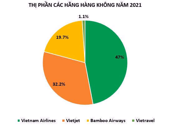 Tính theo số lượng chuyến bay, thị phần hàng không đang được chia lại khi Vienam Airlines có thị phần giảm dần qua từng năm, từ 64,1% năm 2017 xuống 47%, trong khi Vietjet Air giữ vững thị phần khoảng 30% trong nhiều năm và và Bamboo Airways đang dần lấn sân với tỷ trọng chiếm 19,7%.