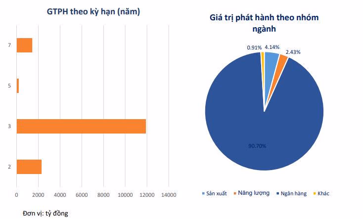 Phần lớn doanh nghiệp phát hành đến từ các ngân hàng thương mại với 14.940 tỉ đồng, chiếm 90,7% tổng giá trị phát hành. Trong nhóm này, ngân hàng TMCP Quân đội (MBBank) phát hành nhiều nhất với 4.600 tỉ đồng trái phiếu kỳ hạn ba năm và ngân hàng TMCP Sài Gòn Thương Tín (Sacombank) đứng sau ở mức 2.500 tỉ đồng, trái phiếu cũng đều có kỳ hạn ba năm.