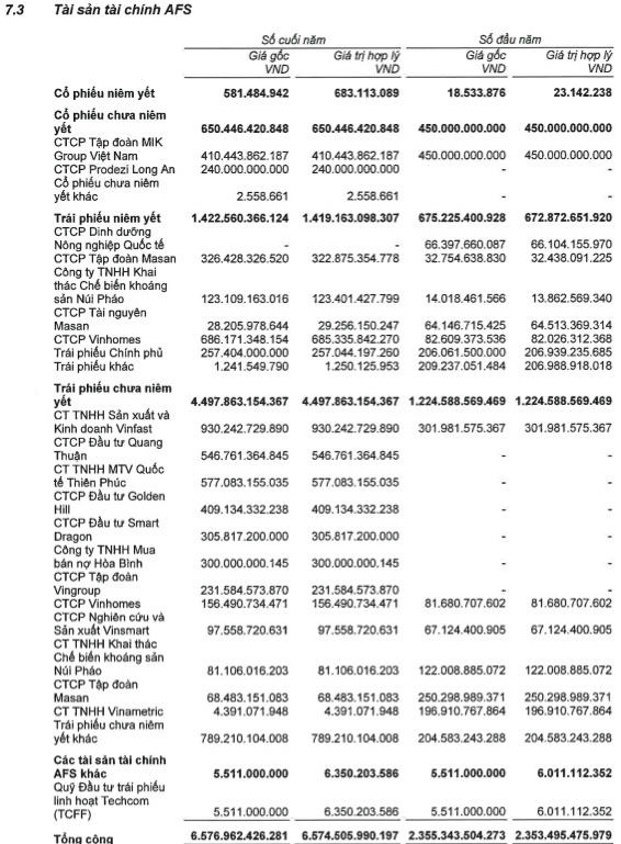 Nhóm Masan cũng phát hành lượng lớn trong đó Masan Meat Life chào bán ra công chúng 1.999 tỷ đồng trái phiếu không chuyển đổi, không kèm chứng quyền, không có tài sản đảm bảo. Chứng khoán TBCS cũng phát hành thành công 4.000 tỷ đồng trái phiếu không chuyển đổi, không kèm chứng quyền, không được bảo đảm cho Tập đoàn Masan theo hình thức chào bán ra công chúng. TCBS cũng phát hành thành công 1.000 tỷ đồng trái phiếu có tài sản đảm bảo và có bảo lãnh thanh toán theo hình thức phát hành riêng lẻ cho Masan Hight-tech Materials thuộc Tập đoàn Masan.