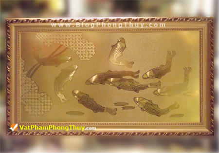 Tranh vẽ 9 con cá, lợi dụng sự đồng âm giữa 九 ‘cửu\’ là chín và 久 ‘cửu\’ là lâu dài để cầu chúc dư dả lâu dài.