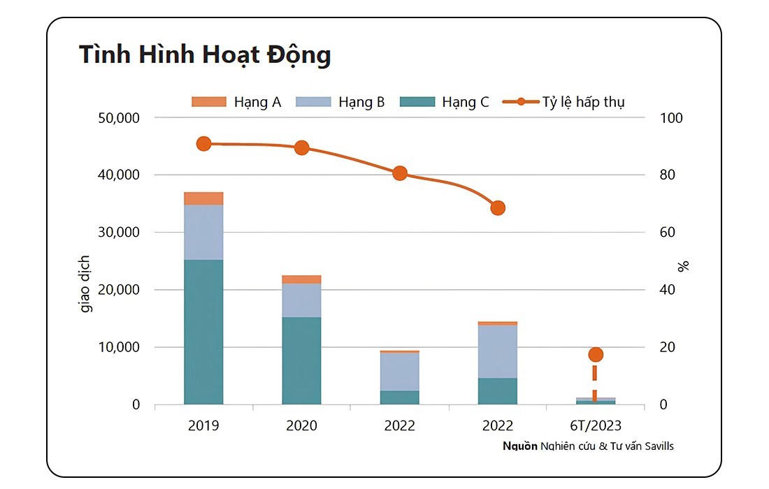 Chỉ có phân khúc cao cấp và trung cấp ghi nhận nguồn cung mới, trong đó, phân khúc cao cấp giảm 12% số lượng mở bán mới trong 6 tháng đầu năm 2023 so với 6 tháng cuối năm 2022, và chỉ bằng 28% số lượng mở bán mới của giai đoạn cùng kỳ năm trước.