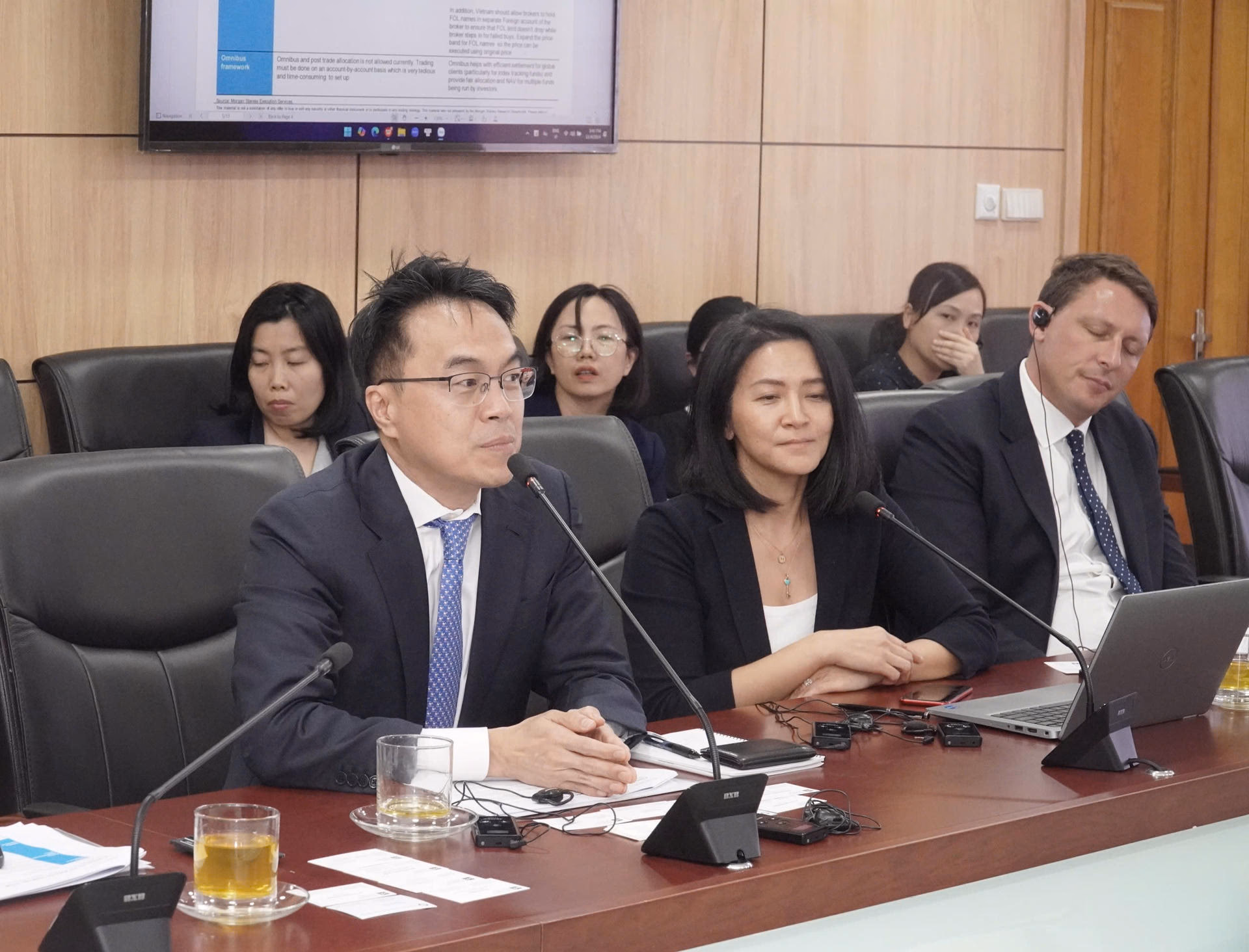 Tại buổi làm việc, Chủ tịch UBCKNN Vũ Thị Chân Phương đã cập nhật những chính sách mới mà Chính phủ, Bộ Tài chính Việt Nam đang triển khai nhằm tạo điều kiện thuận lợi nhất để nhà đầu tư nước ngoài tham gia vào thị trường tài chính Việt Nam, cũng như đáp ứng các tiêu chí nâng hạng lên thị trường mới nổi.
