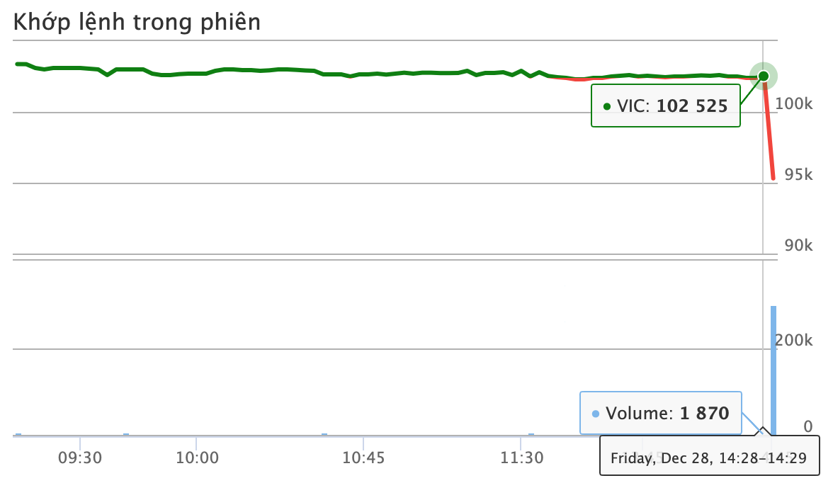 Cổ phiếu VIC bất ngờ lao dốc mạnh cuối phiên 28/12