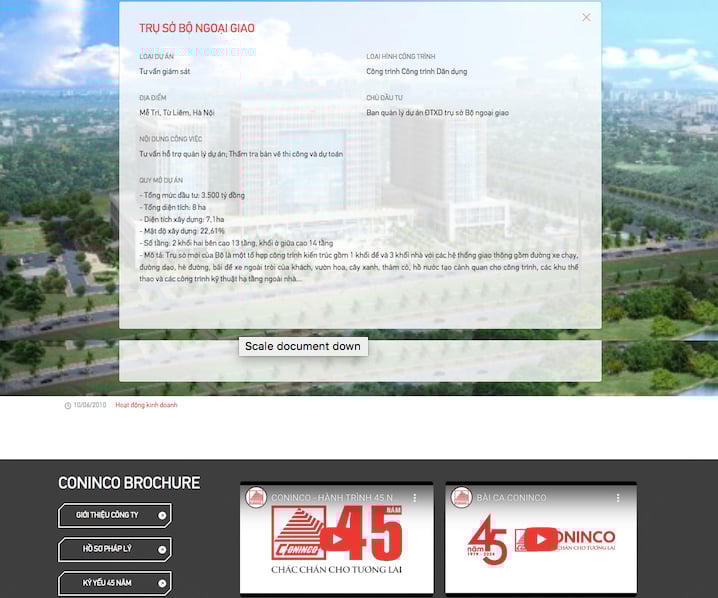 Theo thông tin từ website của CONINCO, tại Dự án xây dựng Trụ sở mới của Bộ Ngoại giao, doanh nghiệp này là đơn vị tư vấn giám sát với nội dung công việc "Tư vấn hỗ trợ quản lý dự án, thẩm tra bản vẽ thi công và dự toán".