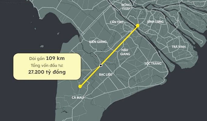 Cao tốc Cần Thơ - Cà Mau (thuộc Dự án cao tốc Bắc Nam phía Đông giai đoạn 2021-2025) có chiều dài hơn 110km, được khởi công vào tháng 1/2023.