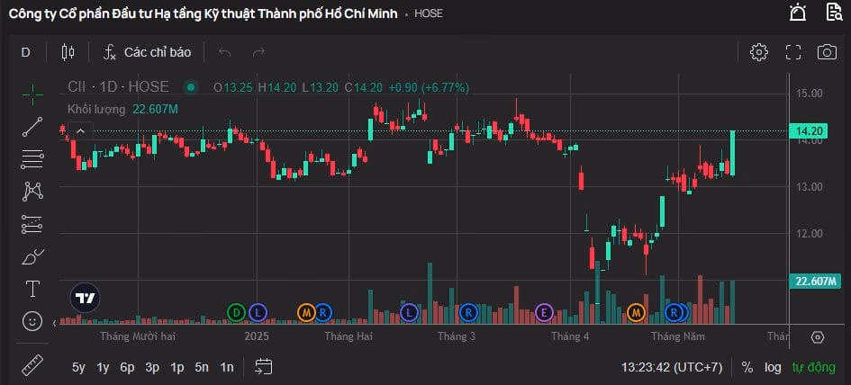 Kết thúc phiên giao dịch ngày 19/5/2025, khi văn bản của Trung tâm Xúc tiến Thương mại và Đầu tư TP.HCM (ITPC) xác nhận ông Eric Trump – Phó Chủ tịch Tập đoàn Trump – sẽ có mặt tại Việt Nam vào ngày 22/5 để khảo sát vị trí đầu tư, cổ phiếu CII của CTCP Đầu tư Hạ tầng Kỹ thuật Thành phố Hồ Chí Minh đã tăng kịch biên độ lên mức 14.200 đồng/1cp, tăng 6,77% so với ngày trước đó và trắng bên bán.