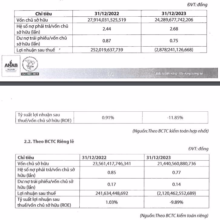 Theo đó, tại thời điểm 31/12/2023, vốn chủ sở hữu của Trung Nam Group đạt 24.289,6 tỷ đồng, giảm 3.624 tỷ đồng so với năm 2022.