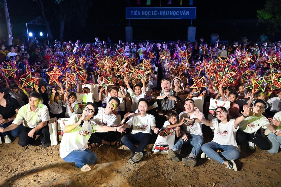 Không chỉ được hoà mình vui ca, các bé còn được tặng hơn 300 phần quà Trung thu, bao gồm đồng phục học sinh cho năm học mới, vở, thước kẻ, bánh Trung thu và kẹo. Các phụ huynh cũng được vui cùng con khi được tặng gạo, đường, nước mắm, nước tương, muối, hạt nêm... Đây là những phần quà do chính tập thể nhân viên công ty Home Credit đóng góp.