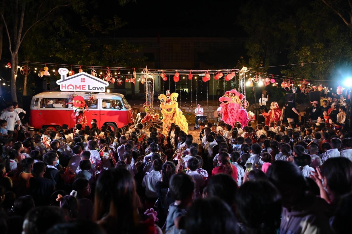 Mới 15g, hơn 300 học sinh đã chen kín sân trường để sẵn sàng thưởng hội. Hàng trăm phụ huynh cũng đứng chật cứng ở vòng ngoài. Các tiết mục hấp dẫn, bất ngờ với múa lân, đồng ca, phá cỗ, nhảy múa, nhận quà của chương trình “Vui ca Trung thu cùng Home Love” chính thức diễn ra vào 19g trong tưng bừng và ngập tràn tiếng cười của các em nhỏ.