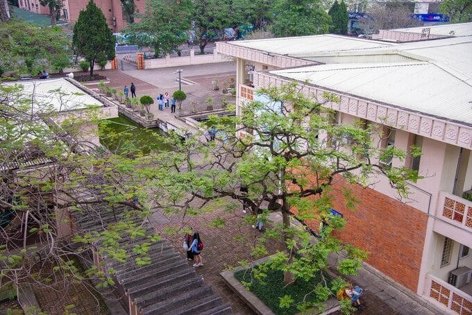 Ngoài danh tiếng là trường đại học lọt Top những trường "hot" ở Việt Nam, Đại học Ngoại ngữ còn được mệnh danh là “studio ngoài trời” với nhiều góc check-in ấn tượng. Trường được thiết kế theo kiến trúc châu Âu cổ kính nhưng vẫn có nét đặc trưng của văn hóa phương Đông. Khuôn viên trường luôn tràn ngập bóng cây xanh, tạo cảm giác thư thái cho sinh viên sau mỗi giờ học.