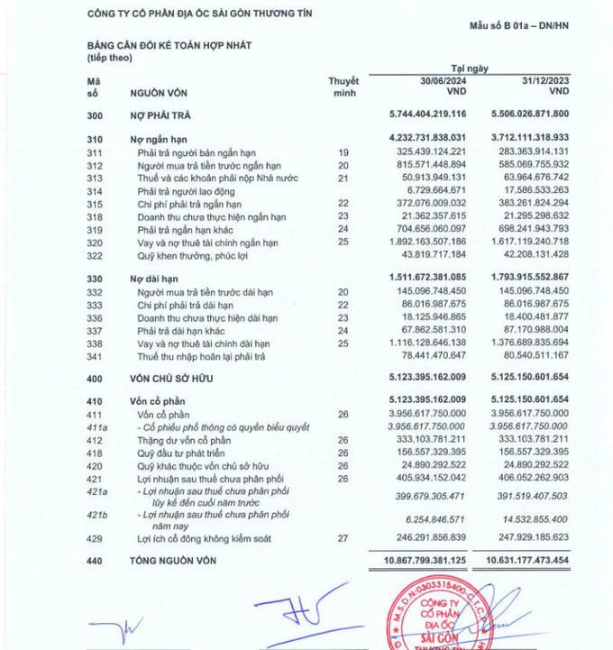 Quý II/2024, tổng nợ phải trả của TTC Land hơn 5.744 tỷ đồng, lợi nhuận sau thuế chưa phân phối giảm hơn 8,3 tỷ và nhiều tài sản là dự án cắm ngân hàng để vay.