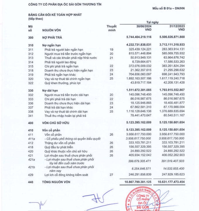 Từ tình hình thực tế đó, tính đến ngày 30/6/2024, TTC Land ghi nhận lợi nhuận sau thuế chưa phân phối chỉ đạt hơn 6,2 tỷ đồng giảm hơn 8,3 tỷ đồng so với cùng kỳ năm 2023. Và tổng lợi nhuận kế toán trước thuế TNDN đạt hơn 9 tỷ đồng giảm hơn 4,6 tỷ đồng so với cùng kỳ năm 2023. Đồng thời, lợi nhuận sau thuế của cổ đông không kiểm soát cũng ghi nhận âm hơn 405 tỷ đồng, giá vốn bán hàng và cung cấp dịch vụ tiếp tục ghi nhận con số âm hơn 57,4 tỷ đồng.